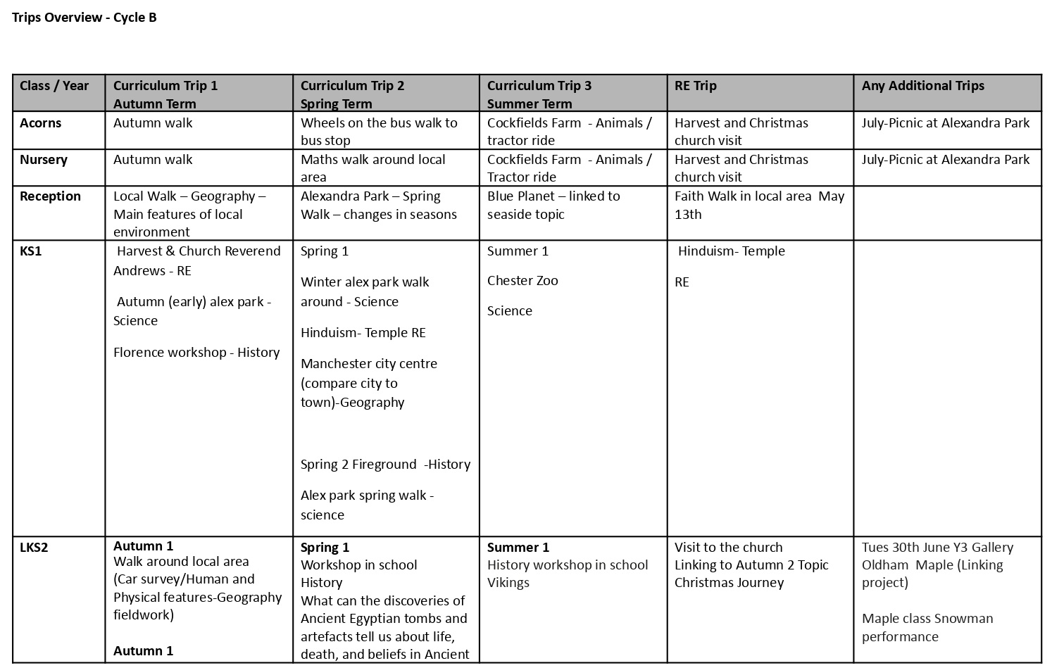 Below, you will see our plan for the visits and visitors children access from Acorns (our two-year-old nursery) up to year 6.